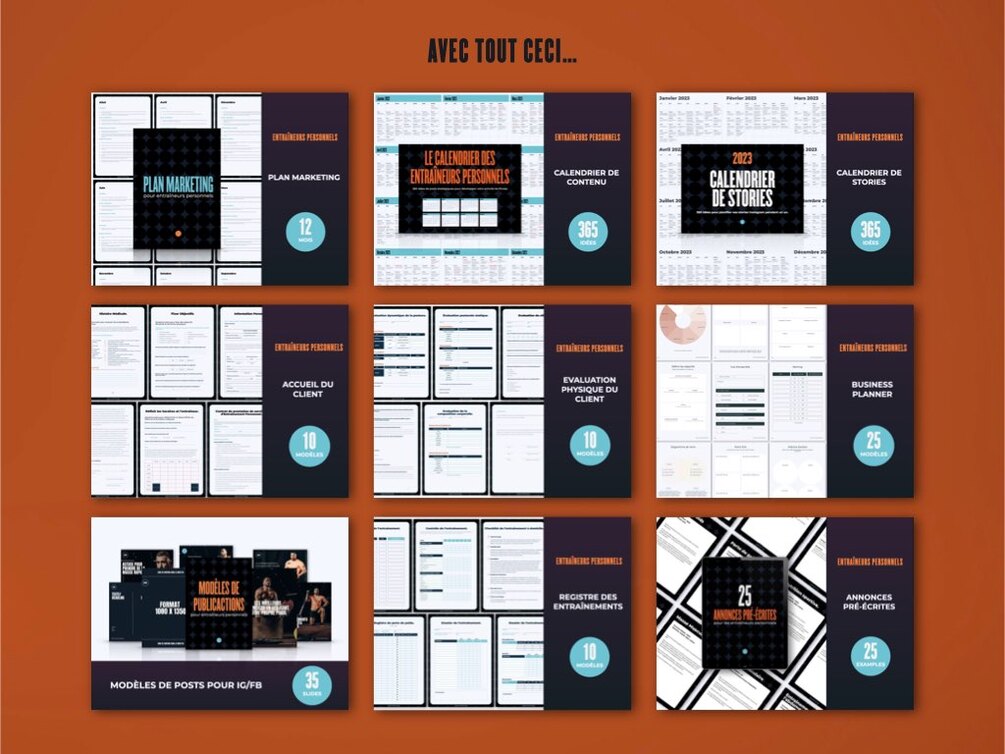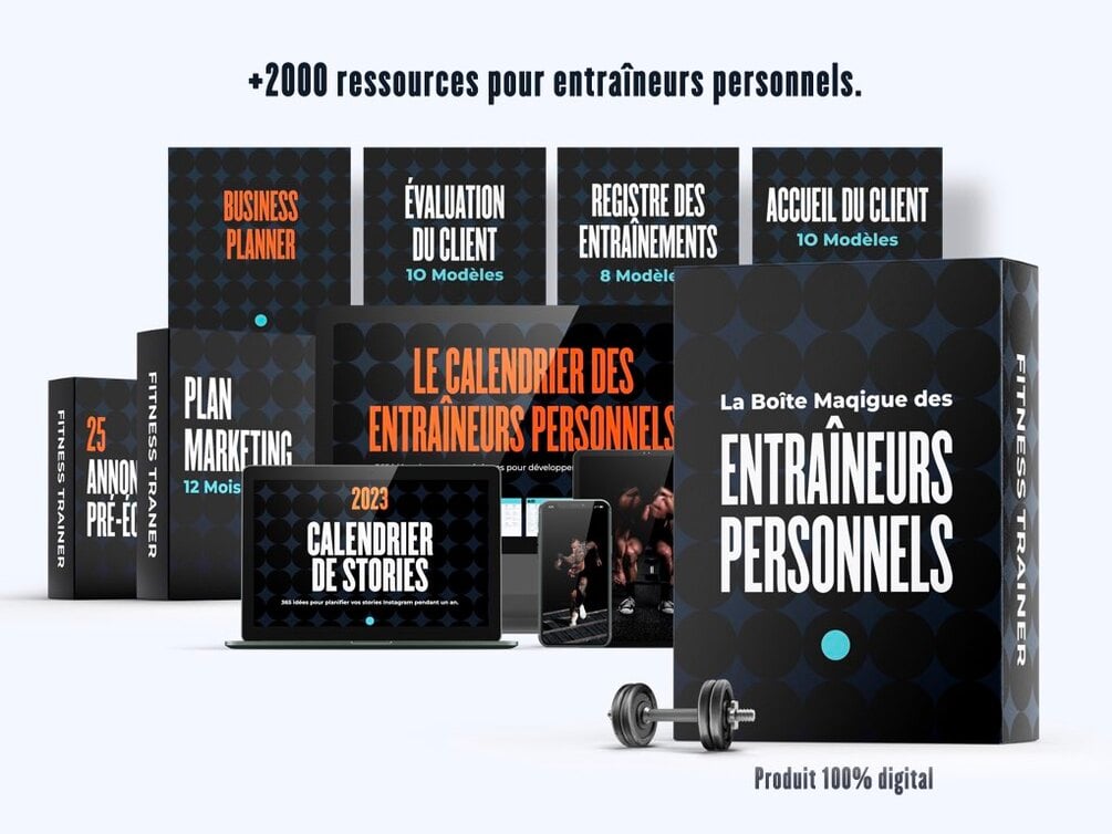 Dans la boîte de l'entraîneur personnel, vous trouverez les outils que mes clients utilisent pour gérer leur entreprise d'entraînement personnel à 6 chiffres :