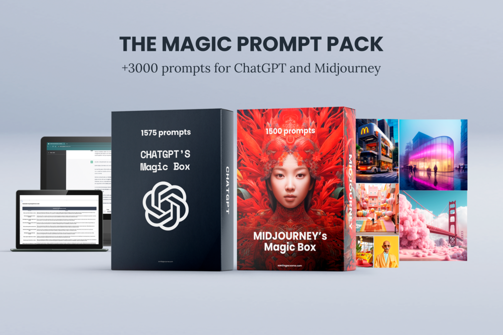 Prepare to unbox your creativity like never before with our "Magic Prompt Pack". This ultimate ideation kit carries a whopping 3100 prompts specially curated to supercharge your imagination and transform your creative journey. Whether you're an entrepreneur using ChatGPT or a passionate artist with Midjourney, our Magic Prompt Pack is your one-stop solution for limitless inspiration.